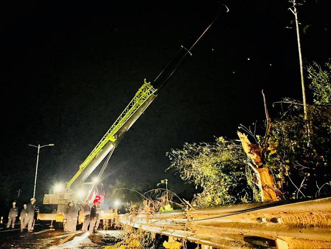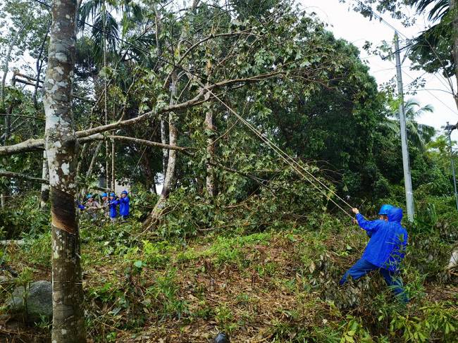 到達(dá)海南后,揭陽明利綜合能源發(fā)展有限公司支援海南抗災(zāi)搶險(xiǎn)隊(duì)在澄邁縣緊鑼密鼓開展搶修復(fù)電工作。澄邁地貌相對(duì)平整,但林區(qū)覆蓋率較高,橡膠林香蕉園廣泛分布,臺(tái)風(fēng)摩羯過境后,林區(qū)樹木倒塌壓垮電線,線路損壞嚴(yán)重。為打通線路搶修通道,加快復(fù)電進(jìn)度,公司搶險(xiǎn)隊(duì)伍一邊組織大型施工機(jī)械快速重新組立電桿,一邊組織人員及時(shí)消缺搶修,力爭以最快速度恢復(fù)線路正常供電。